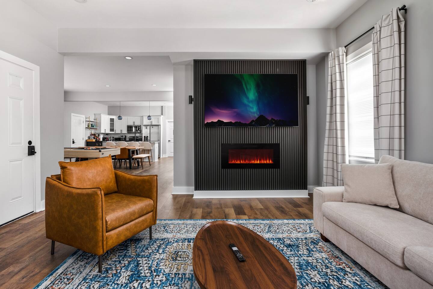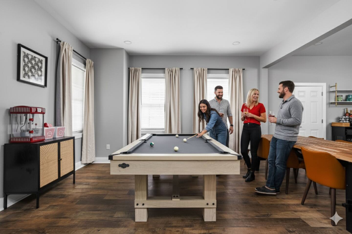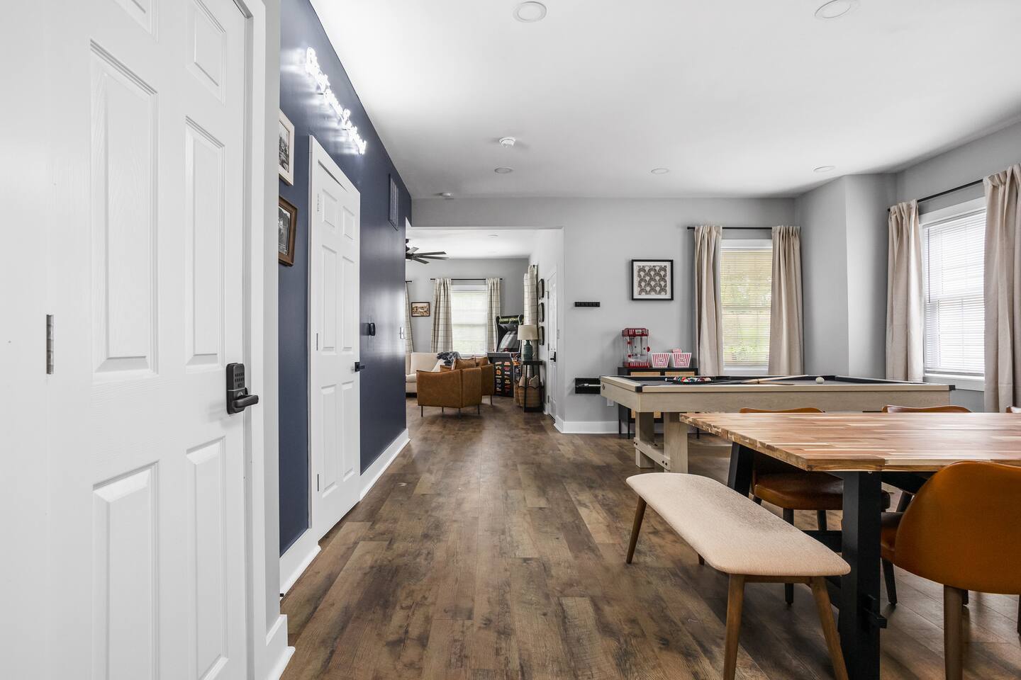 Hendricks Hangout, Indy: Relax in style at this spacious 3100 square feet. Bates-Hendricks home near all of Indy’s top attractions! Just minutes from Lucas Oil Stadium, downtown, Fountain square and other attractions. Inside, enjoy a pool table, arcade machine, fully equipped kitchen, and a home gym with a Peloton. Seats 10 at the dining table and includes all the necessary baby gear. Perfect for families, big groups and companies looking for comfort and fun activities in a prime location!